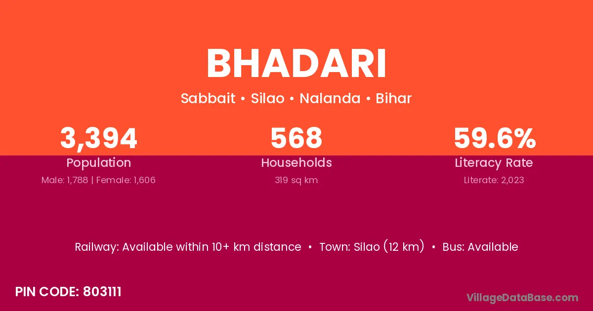 Amarpatan (16 km) is the nearest town to Bhadari village for major economic activities and is located approximately 16 km away.