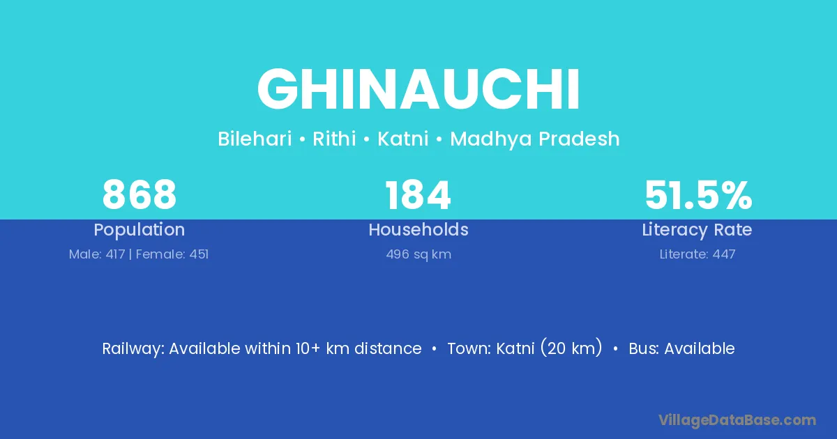 Satna (7 km) is the nearest town to Ghinauchi village for major economic activities and is located approximately 7 km away.