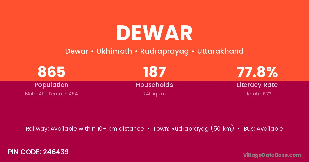 Unchehara (8 km) is the nearest town to Dewar village for major economic activities and is located approximately 8 km away.