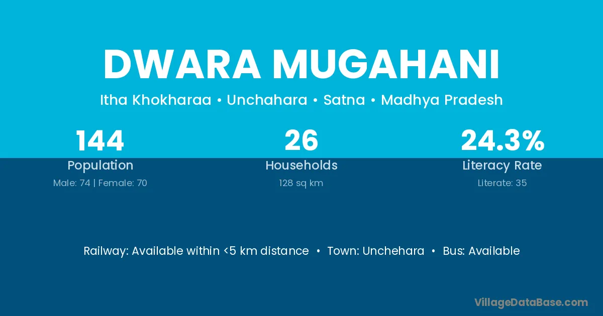 Dwara Mugahani village has a total population of 144 people, of which 74 are males and 70 are females.