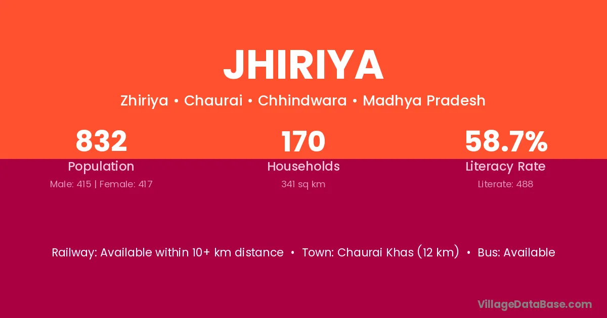Satna (58 km) is the nearest town to Jhiriya village for major economic activities and is located approximately 58 km away.
