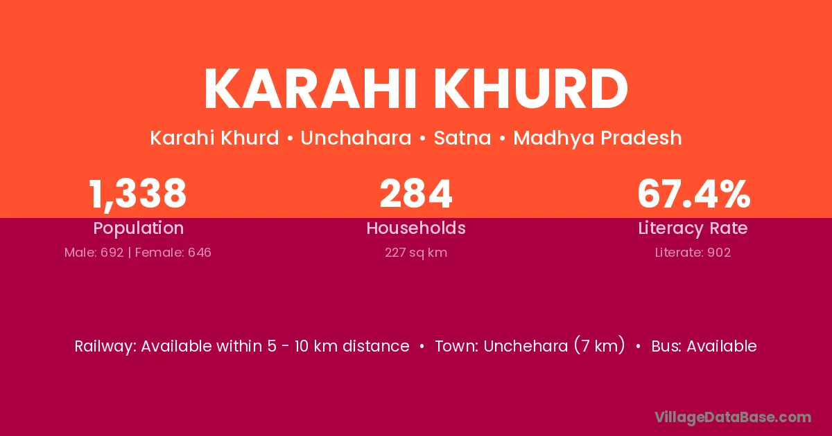 Karahi Khurd village has a total population of 1,338 people, of which 692 are males and 646 are females.