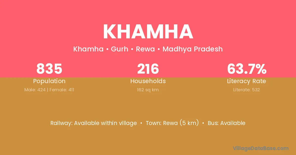 Khamha village has a total population of 484 people, of which 248 are males and 236 are females.