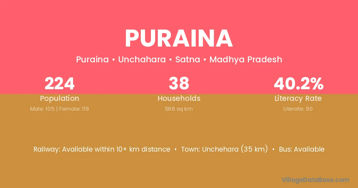 Unchehara (35 km) is the nearest town to Puraina village for major economic activities and is located approximately 35 km away.