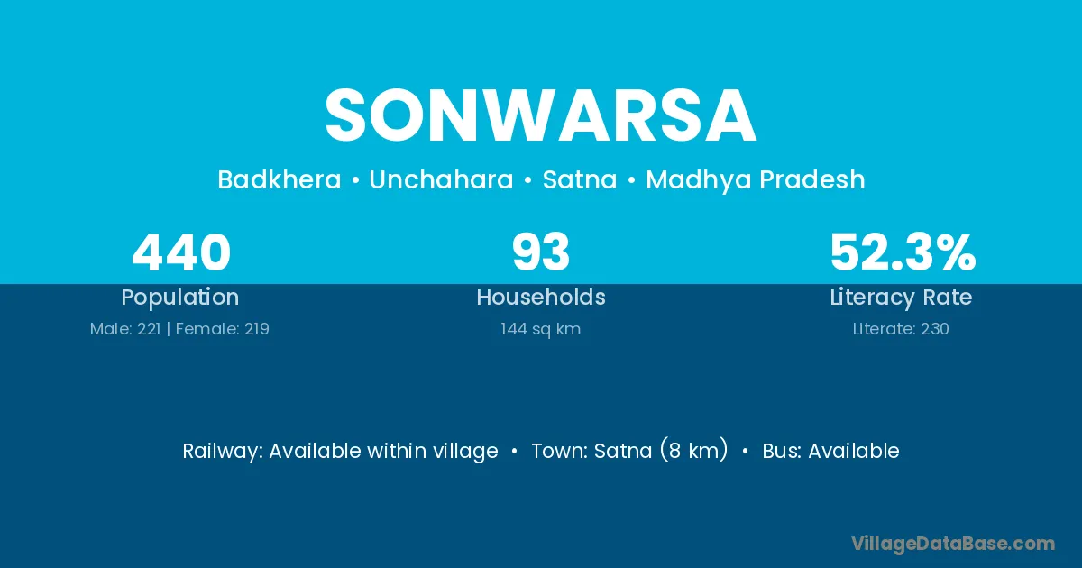 Sonwarsa village has a total population of 440 people, of which 221 are males and 219 are females.