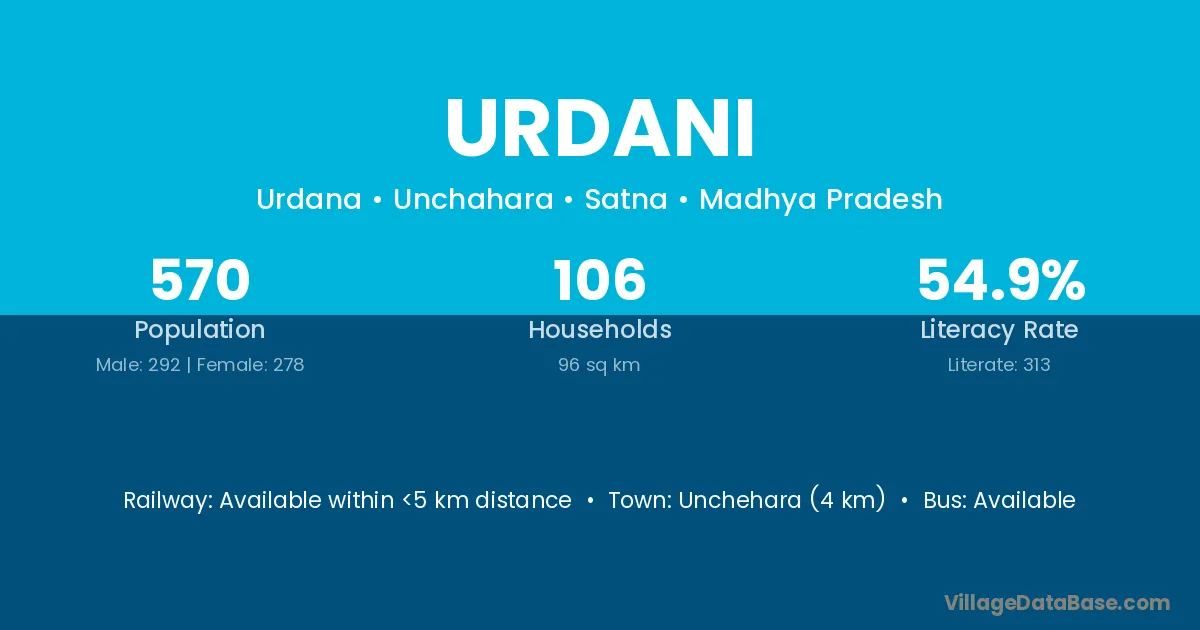 Urdani village has a total population of 570 people, of which 292 are males and 278 are females.