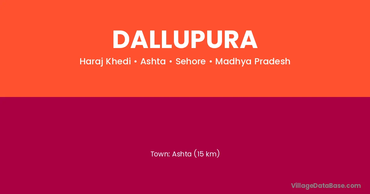 Ashta (15 km) is the nearest town to Dallupura village for major economic activities and is located approximately 15 km away.