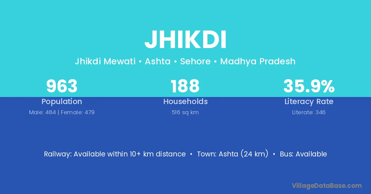 Ashta (24 km) is the nearest town to Jhikdi village for major economic activities and is located approximately 24 km away.