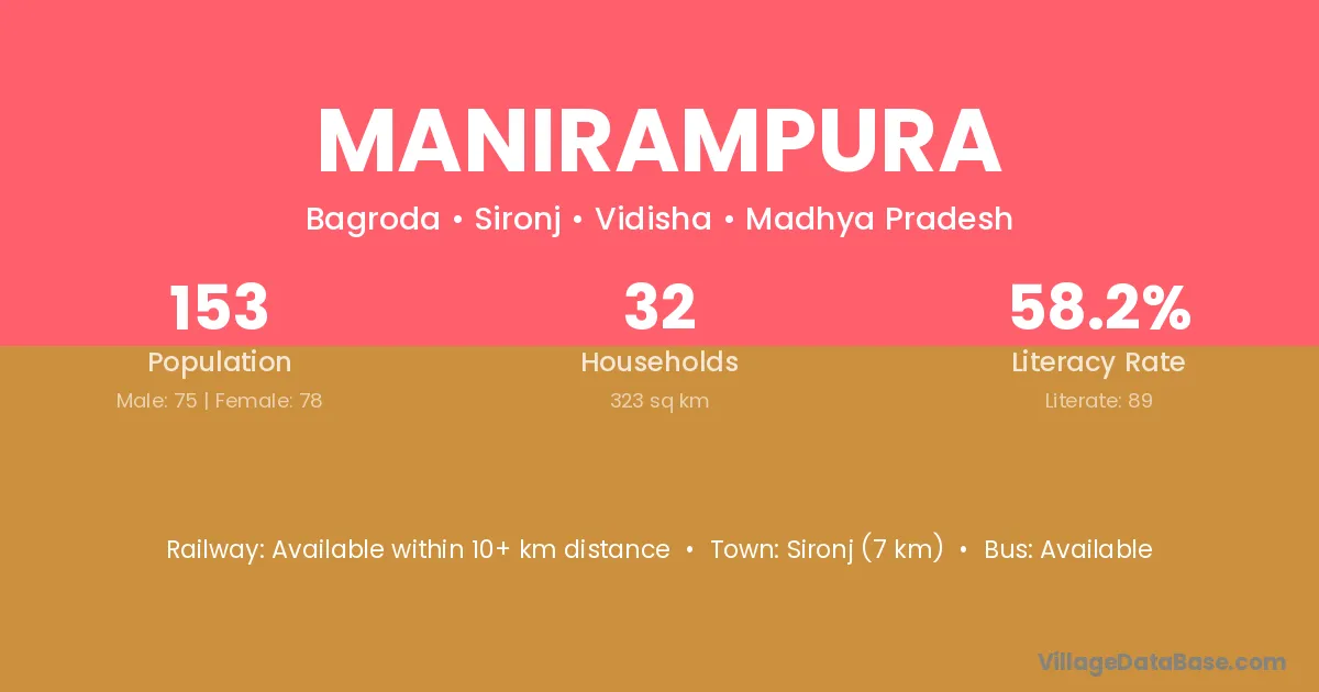 Ashta (26 km) is the nearest town to Manirampura village for major economic activities and is located approximately 26 km away.