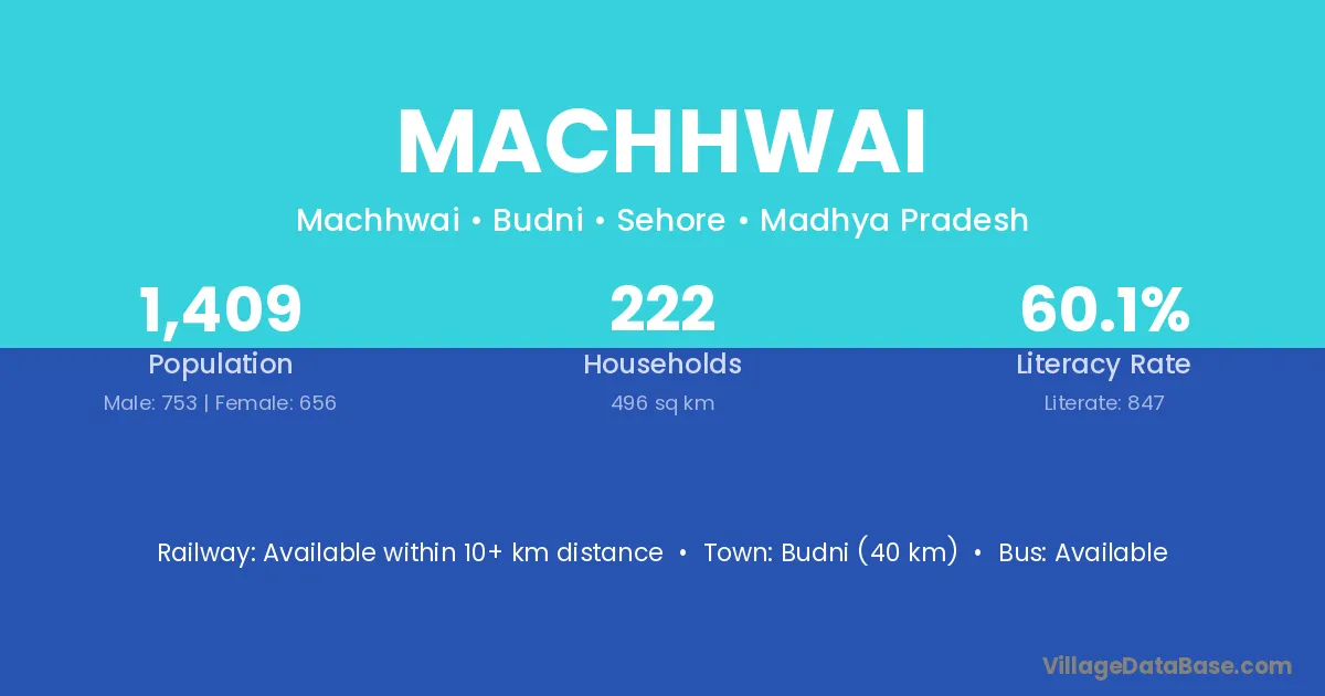 Budni (40 km) is the nearest town to Machhwai village for major economic activities and is located approximately 40 km away.