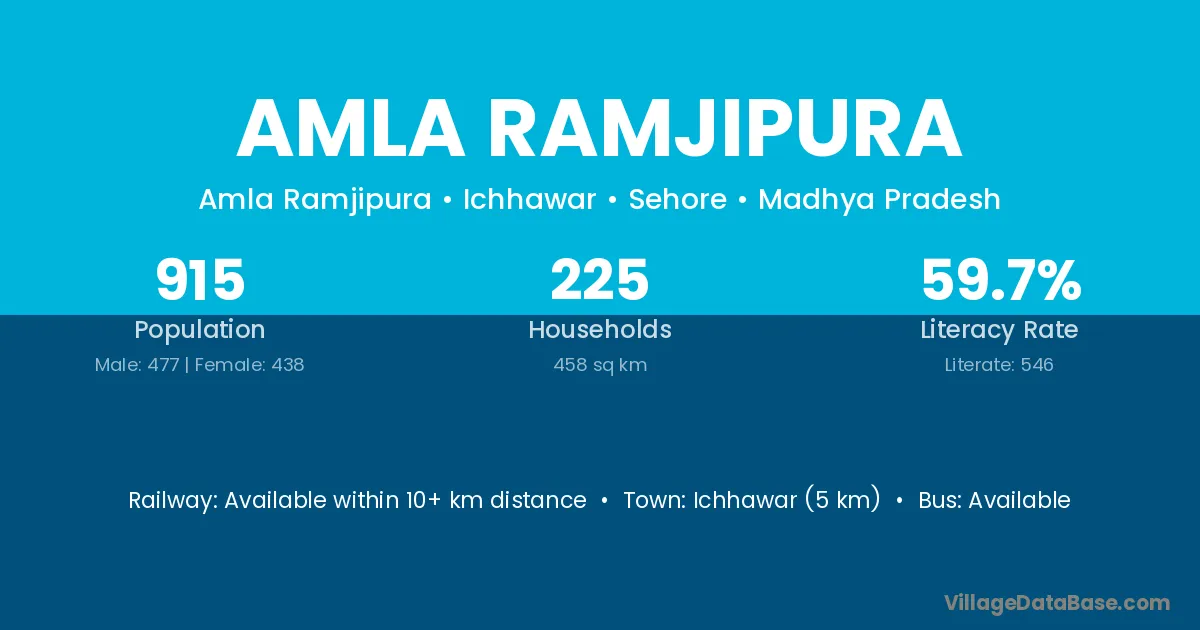 Amla Ramjipura village has a total population of 915 people, of which 477 are males and 438 are females.