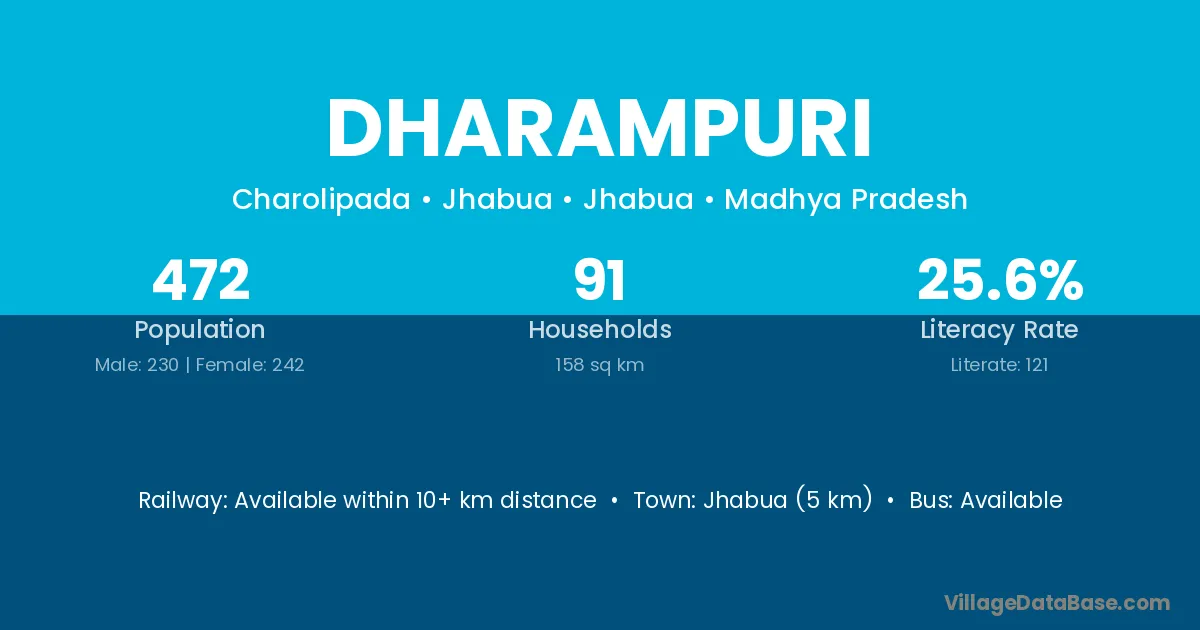 Ichhawar (15 km) is the nearest town to Dharampuri village for major economic activities and is located approximately 15 km away.
