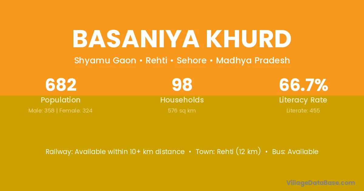 Rehti (12 km) is the nearest town to Basaniya Khurd village for major economic activities and is located approximately 12 km away.
