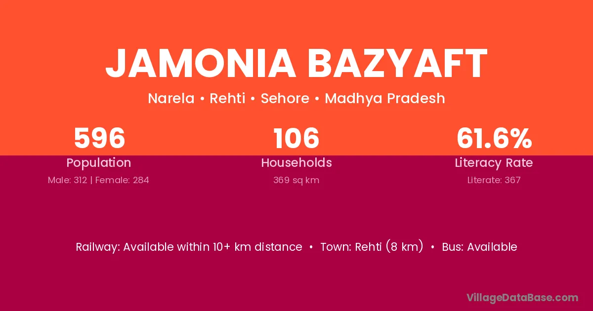 Rehti (8 km) is the nearest town to Jamonia Bazyaft village for major economic activities and is located approximately 8 km away.