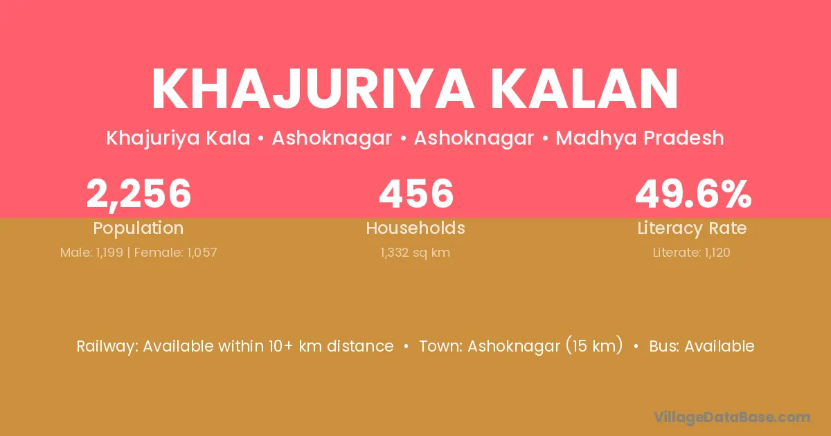 Sehore (22 km) is the nearest town to Khajuriya Kalan village for major economic activities and is located approximately 22 km away.