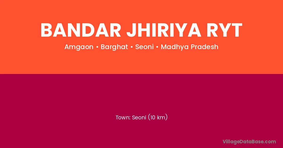 Seoni (10 km) is the nearest town to Bandar Jhiriya Ryt village for major economic activities and is located approximately 10 km away.