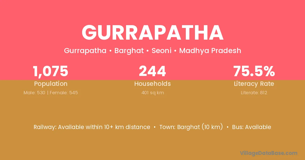 Gurrapatha village has a total population of 1,075 people, of which 530 are males and 545 are females.