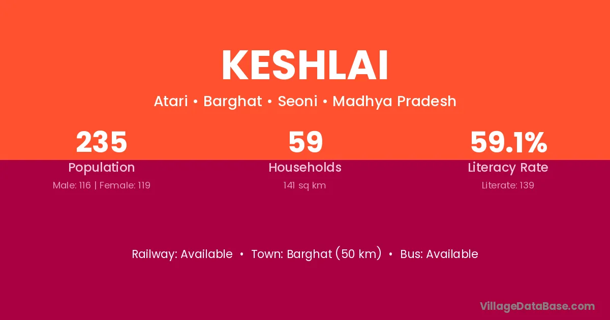 Barghat (50 km) is the nearest town to Keshlai village for major economic activities and is located approximately 50 km away.