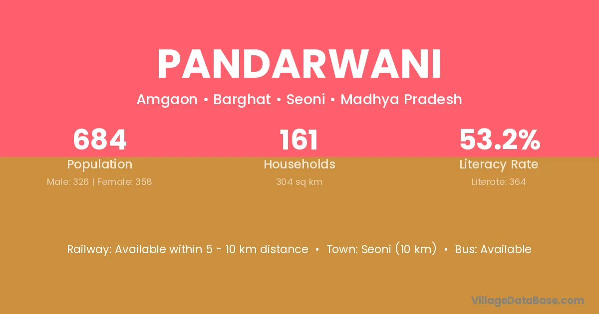 Seoni (10 km) is the nearest town to Pandarwani village for major economic activities and is located approximately 10 km away.