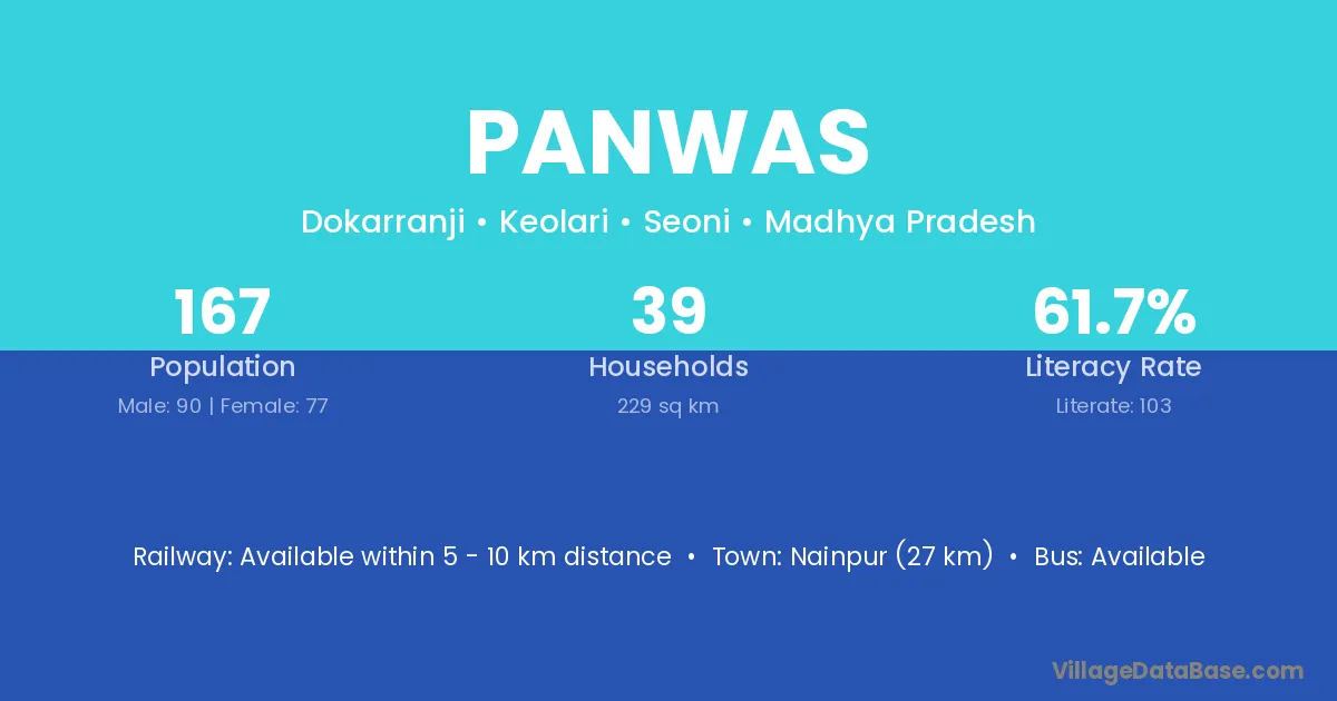 Barghat (16 km) is the nearest town to Panwas village for major economic activities and is located approximately 16 km away.