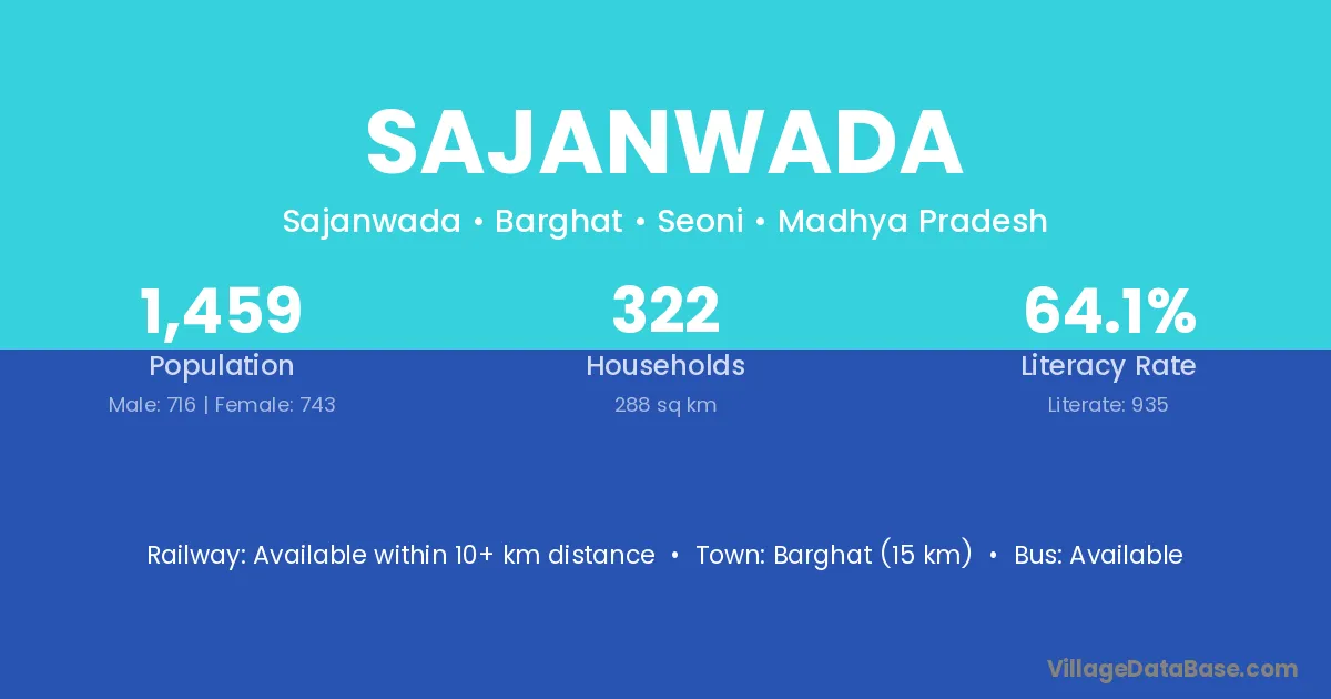 Barghat (15 km) is the nearest town to Sajanwada village for major economic activities and is located approximately 15 km away.