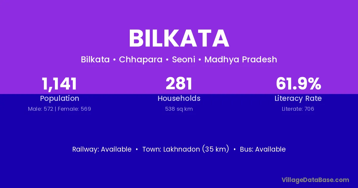 Lakhnadon (35 km) is the nearest town to Bilkata village for major economic activities and is located approximately 35 km away.