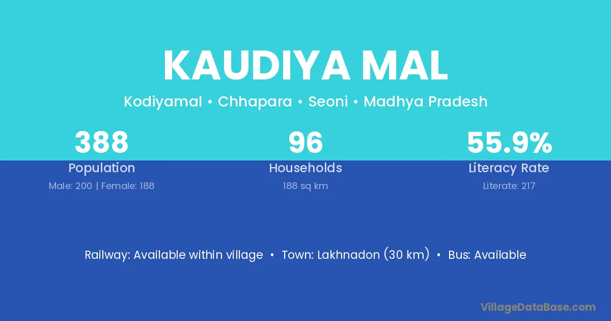 Kaudiya Mal village has a total population of 388 people, of which 200 are males and 188 are females.