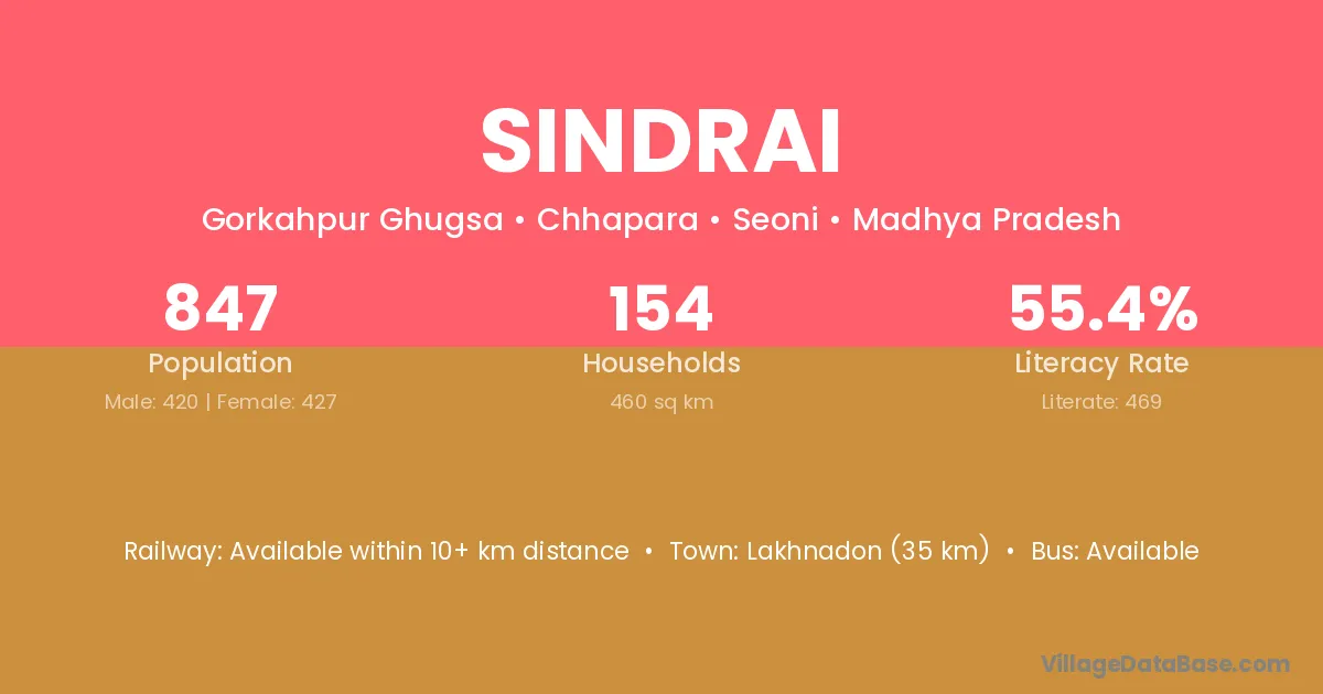 Lakhnadon (35 km) is the nearest town to Sindrai village for major economic activities and is located approximately 35 km away.