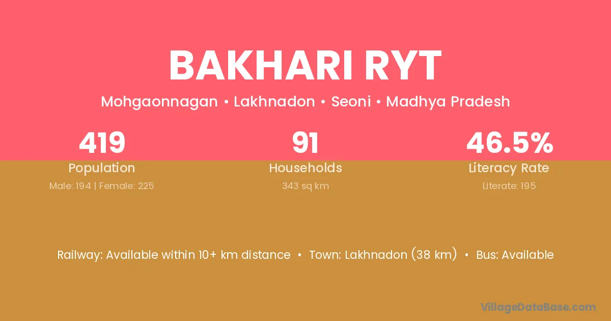 Bakhari Ryt village is located in the Ghansaur Tehsil of the Seoni district in Madhya Pradesh .