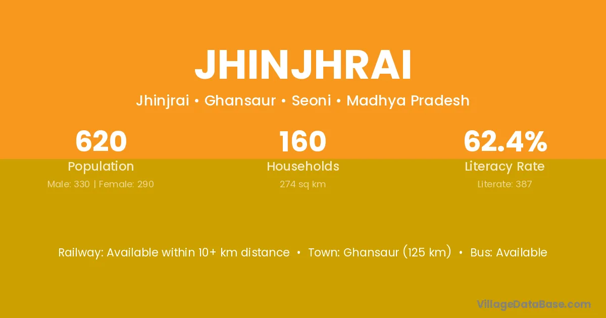 Jhinjhrai village has a total population of 620 people, of which 330 are males and 290 are females.