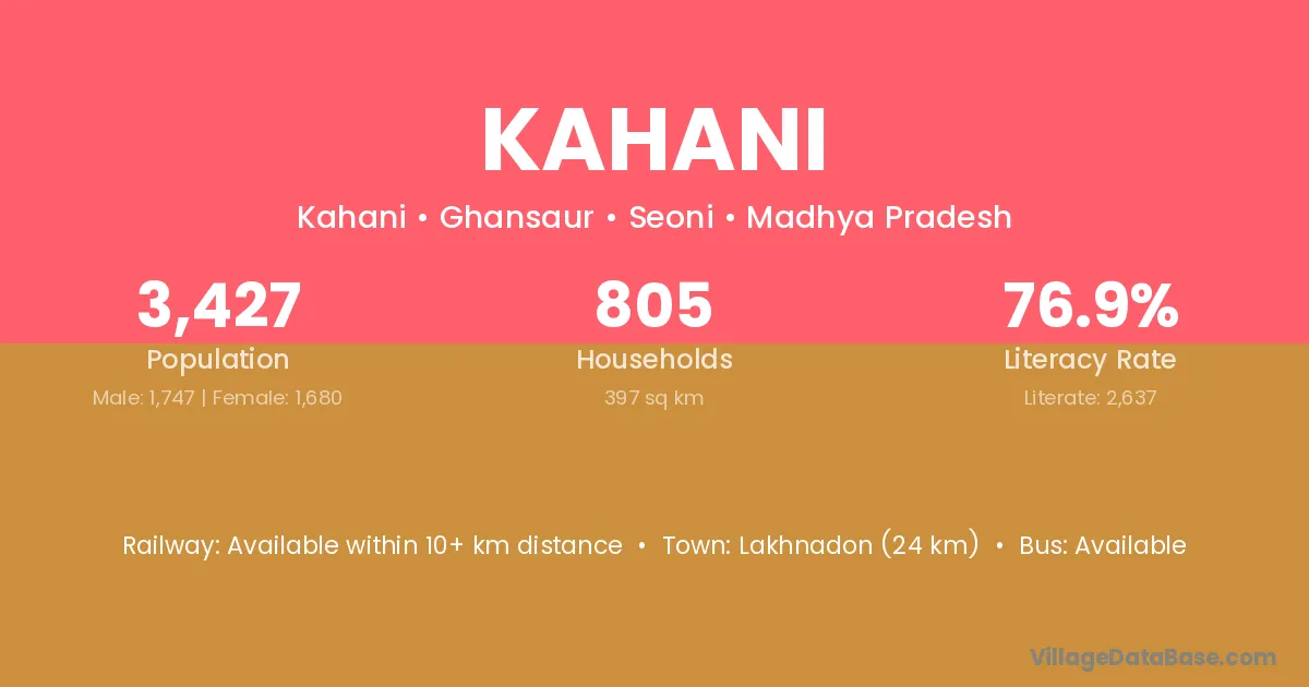 Lakhnadon (24 km) is the nearest town to Kahani village for major economic activities and is located approximately 24 km away.