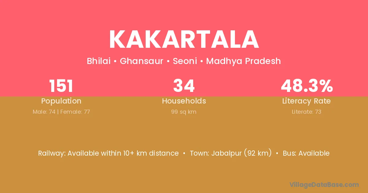 Jabalpur (92 km) is the nearest town to Kakartala village for major economic activities and is located approximately 92 km away.