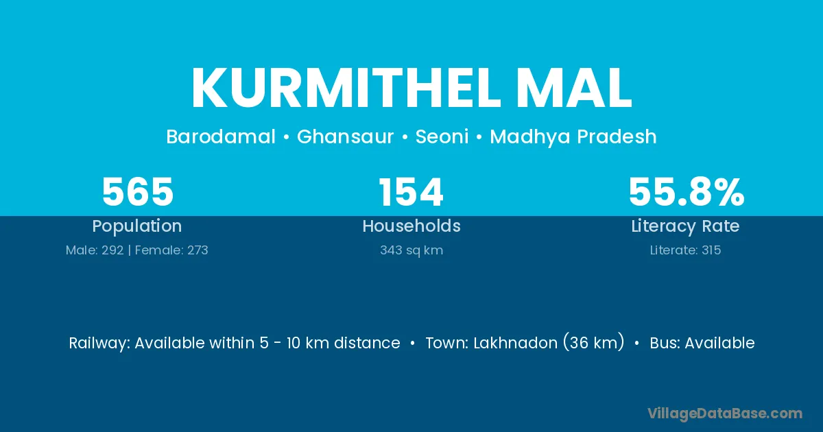 Lakhnadon (36 km) is the nearest town to Kurmithel Mal village for major economic activities and is located approximately 36 km away.
