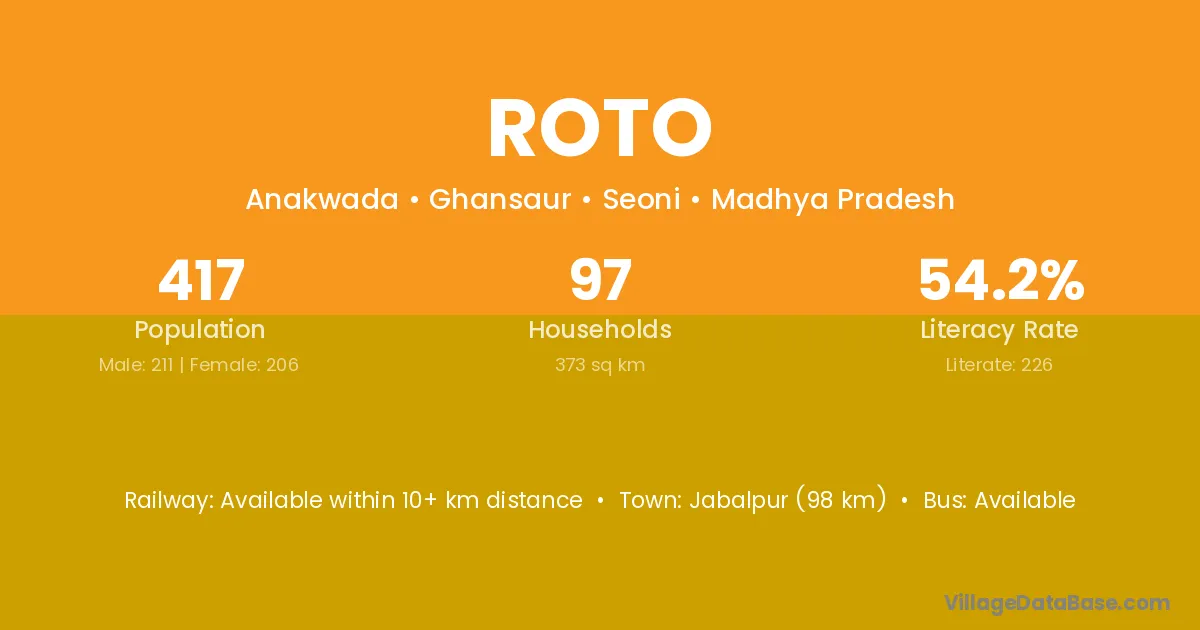 Roto village has a total population of 417 people, of which 211 are males and 206 are females.
