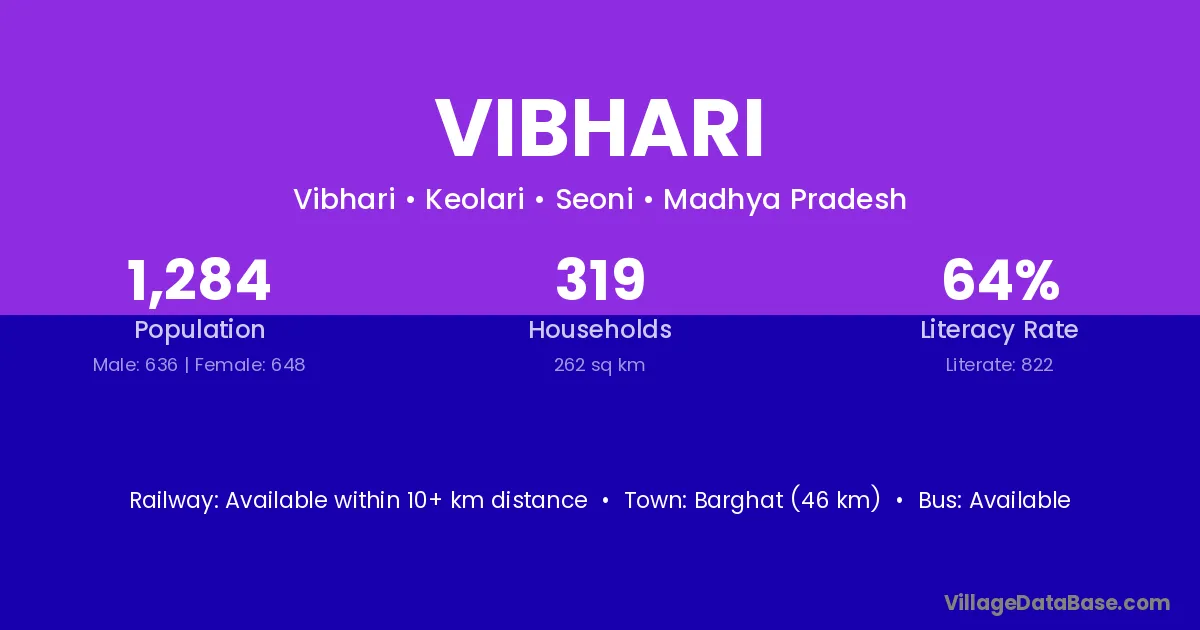 Vibhari village has a total population of 1,284 people, of which 636 are males and 648 are females.