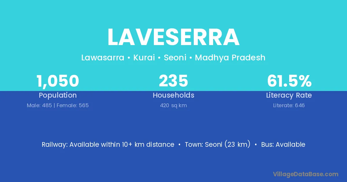 Seoni (23 km) is the nearest town to Laveserra village for major economic activities and is located approximately 23 km away.
