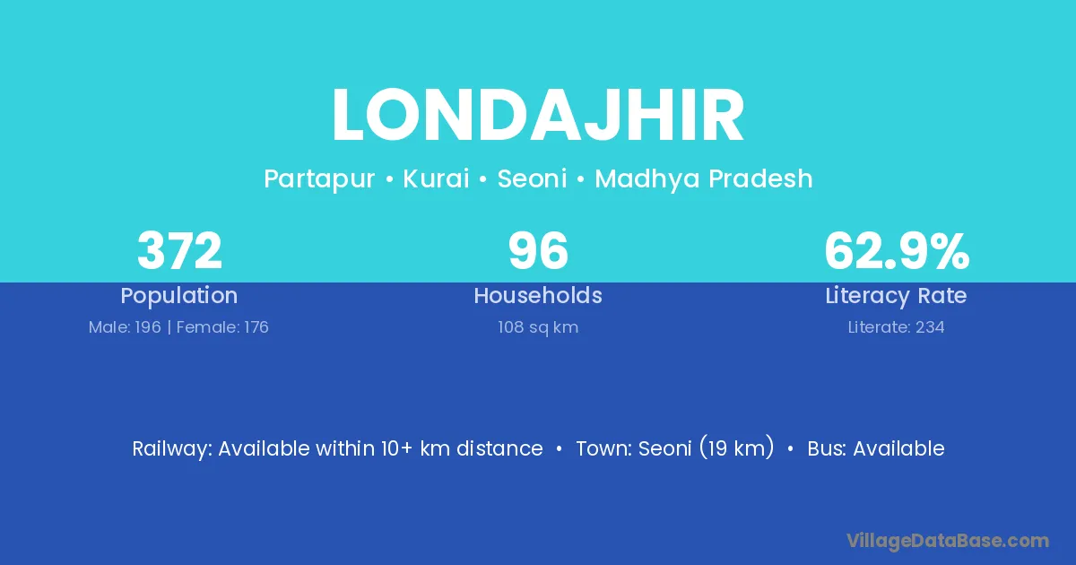 Seoni (19 km) is the nearest town to Londajhir village for major economic activities and is located approximately 19 km away.