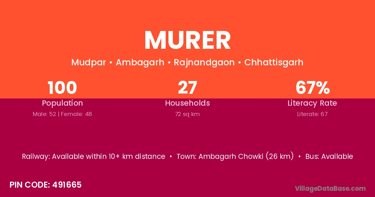 Seoni (41 km) is the nearest town to Murer village for major economic activities and is located approximately 41 km away.