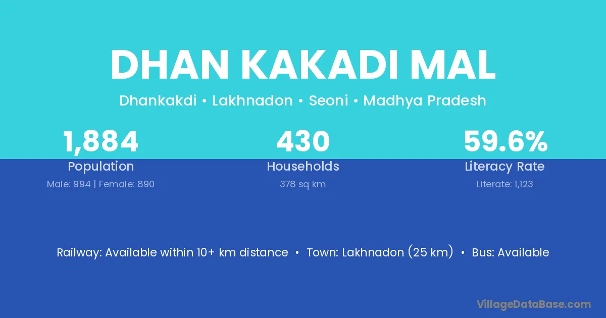 Lakhnadon (25 km) is the nearest town to Dhan Kakadi Mal village for major economic activities and is located approximately 25 km away.