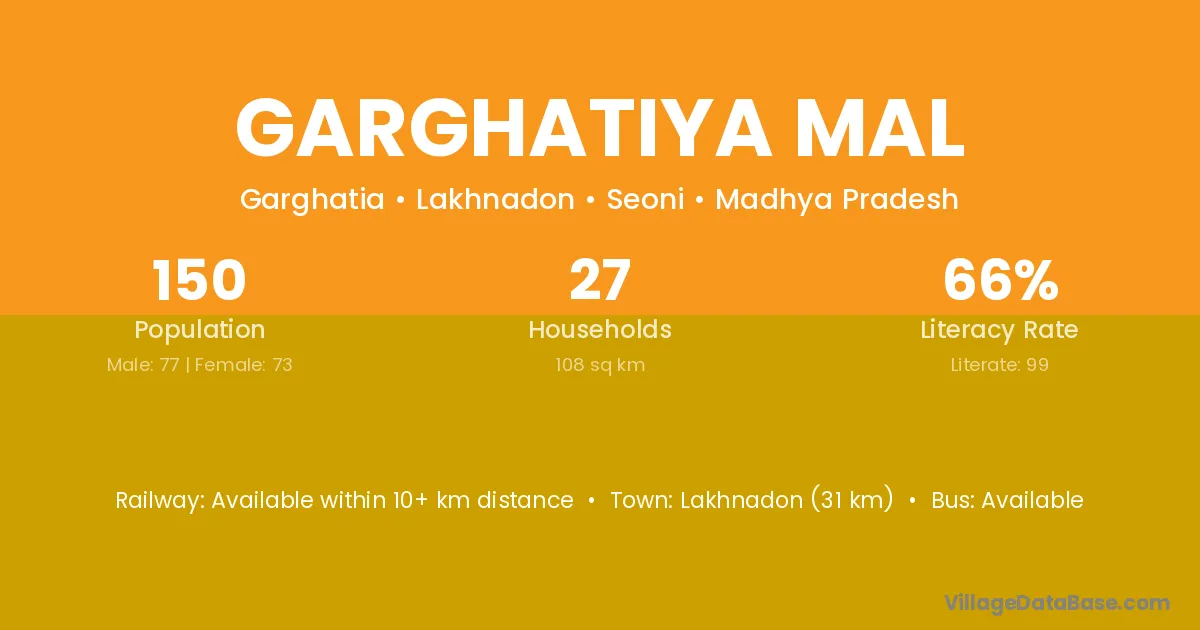 Lakhnadon (31 km) is the nearest town to Garghatiya Mal village for major economic activities and is located approximately 31 km away.