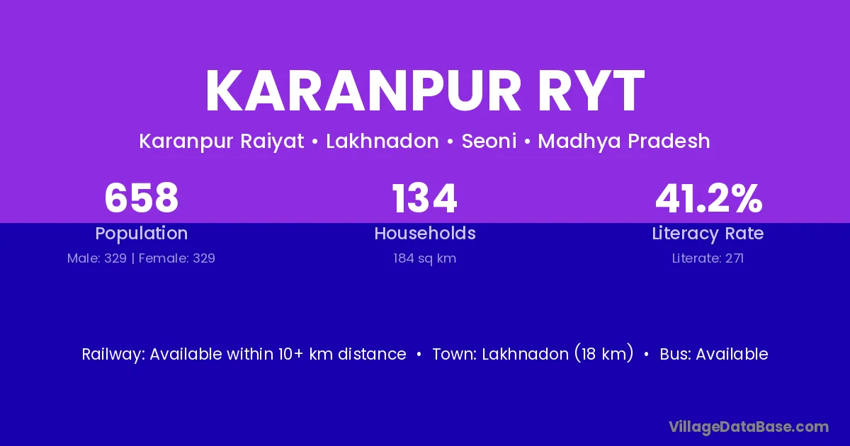 Lakhnadon (18 km) is the nearest town to Karanpur Ryt village for major economic activities and is located approximately 18 km away.