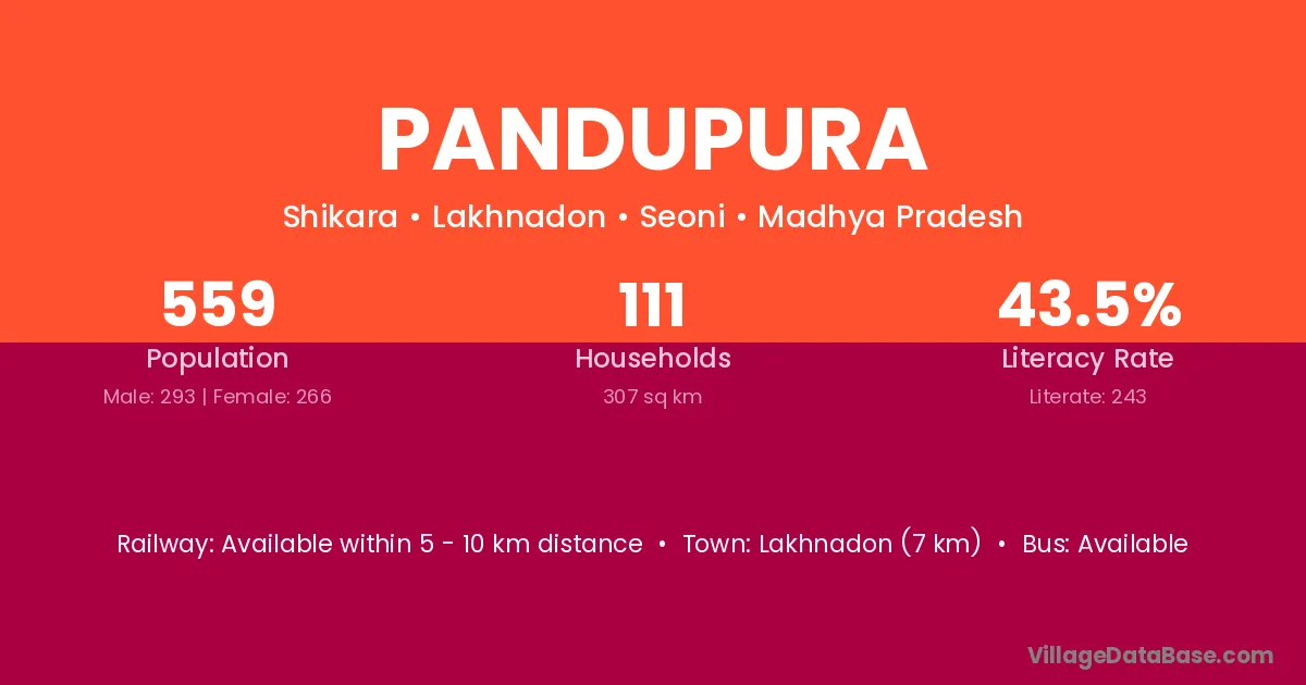 Lakhnadon (7 km) is the nearest town to Pandupura village for major economic activities and is located approximately 7 km away.
