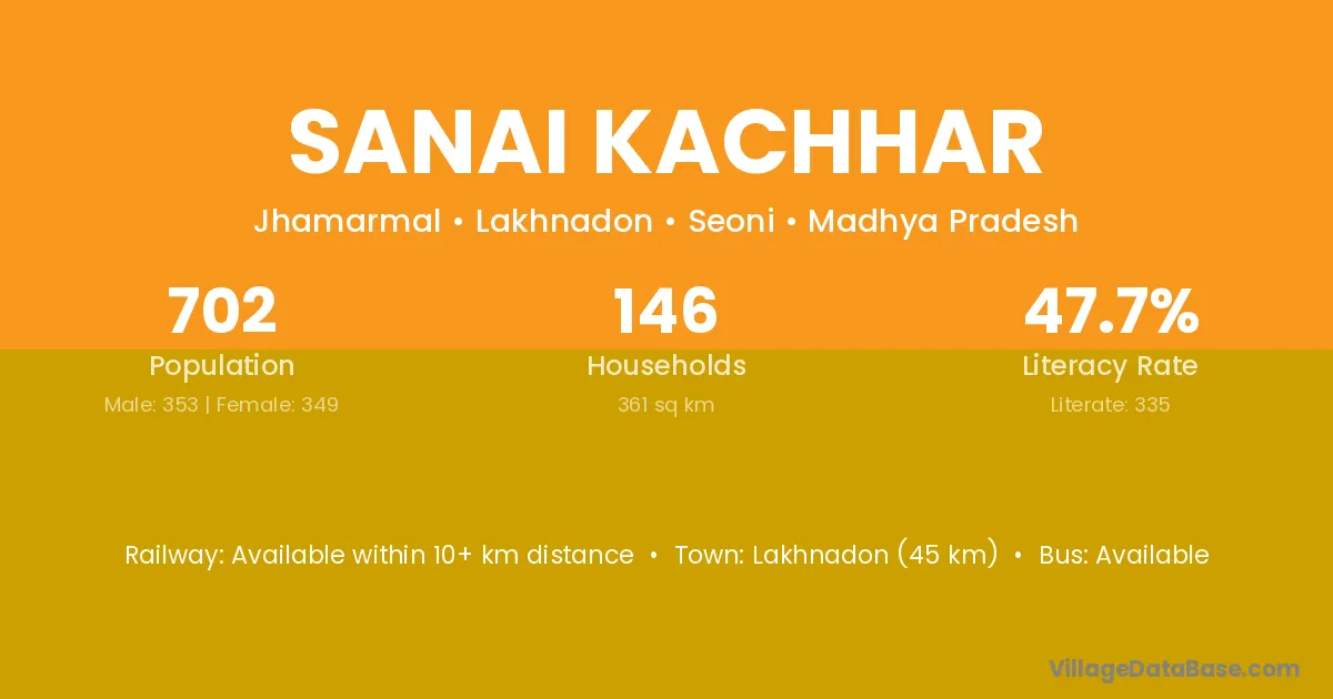 Lakhnadon (45 km) is the nearest town to Sanai Kachhar village for major economic activities and is located approximately 45 km away.