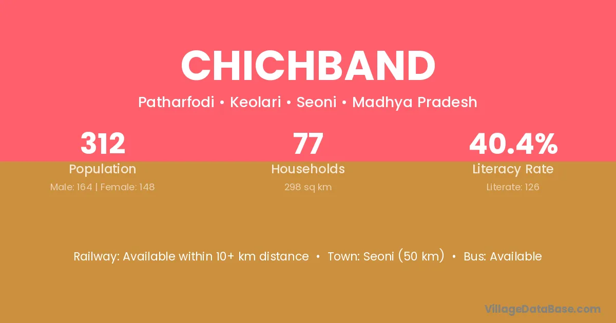 Seoni (11 km) is the nearest town to Chichband village for major economic activities and is located approximately 11 km away.