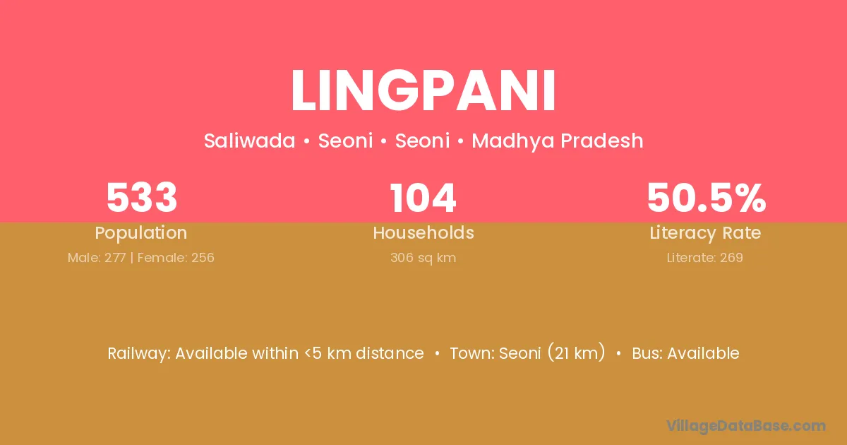 Seoni (21 km) is the nearest town to Lingpani village for major economic activities and is located approximately 21 km away.