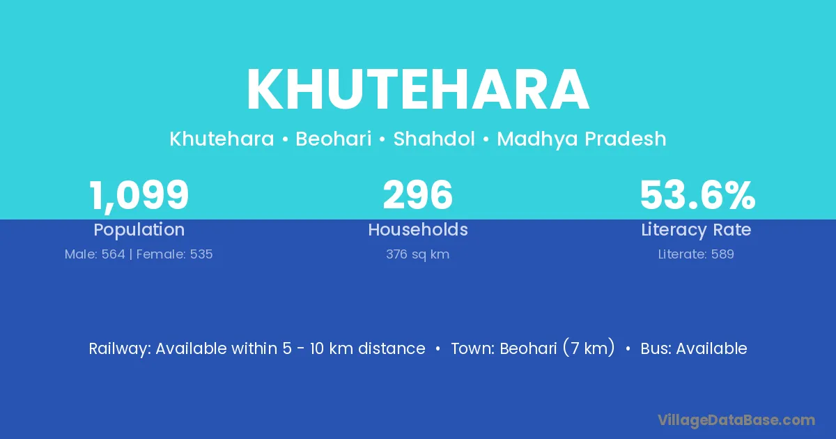 Beohari (7 km) is the nearest town to Khutehara village for major economic activities and is located approximately 7 km away.