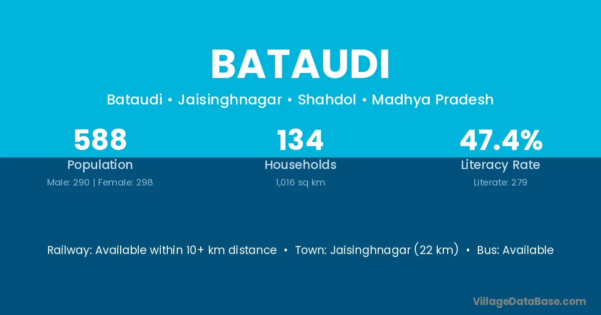Bataudi village has a total population of 588 people, of which 290 are males and 298 are females.