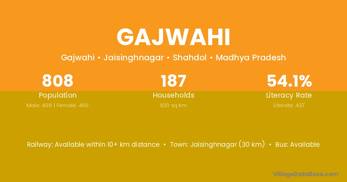 Jaisinghnagar (30 km) is the nearest town to Gajwahi village for major economic activities and is located approximately 30 km away.