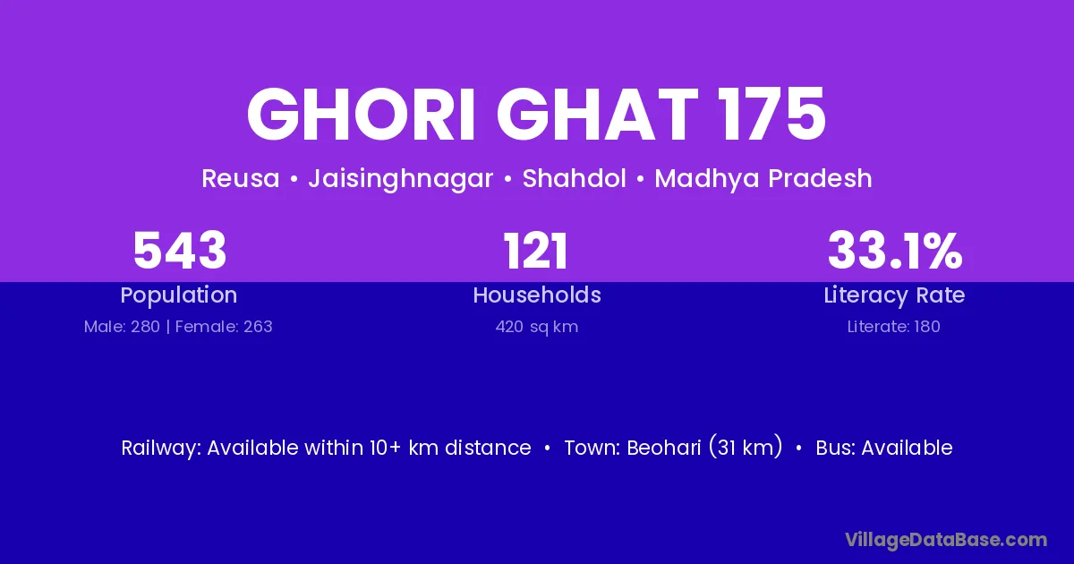 Beohari (31 km) is the nearest town to Ghori Ghat 175 village for major economic activities and is located approximately 31 km away.
