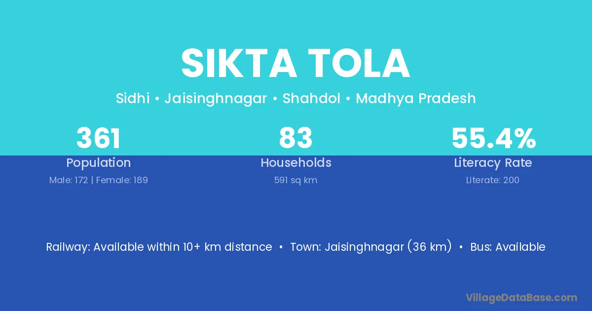 Sikta Tola village has a total population of 361 people, of which 172 are males and 189 are females.